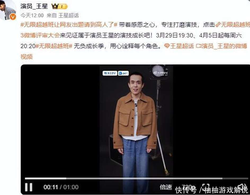 3月26日这天,就像一颗石子投入平静的湖面,王星发布的一个视频在娱乐圈激起了层层涟漪。他在视频里官宣自己要参加热门综艺《无限超越班 3》。你看他那模样,留着寸头,整个人显得干练又精神。他在视频里说的话啊,就像是一个战士在出征前的呐喊,希望自己能被观众真正“看见”。这年头,哪个演员不想被观众看到自己的光芒呢?可他又带着一种小心翼翼,仿佛是害怕这只是一个奢望,但从他的眼神和话语里,能真切地感受到他对未来演艺道路满满当当的期待。
